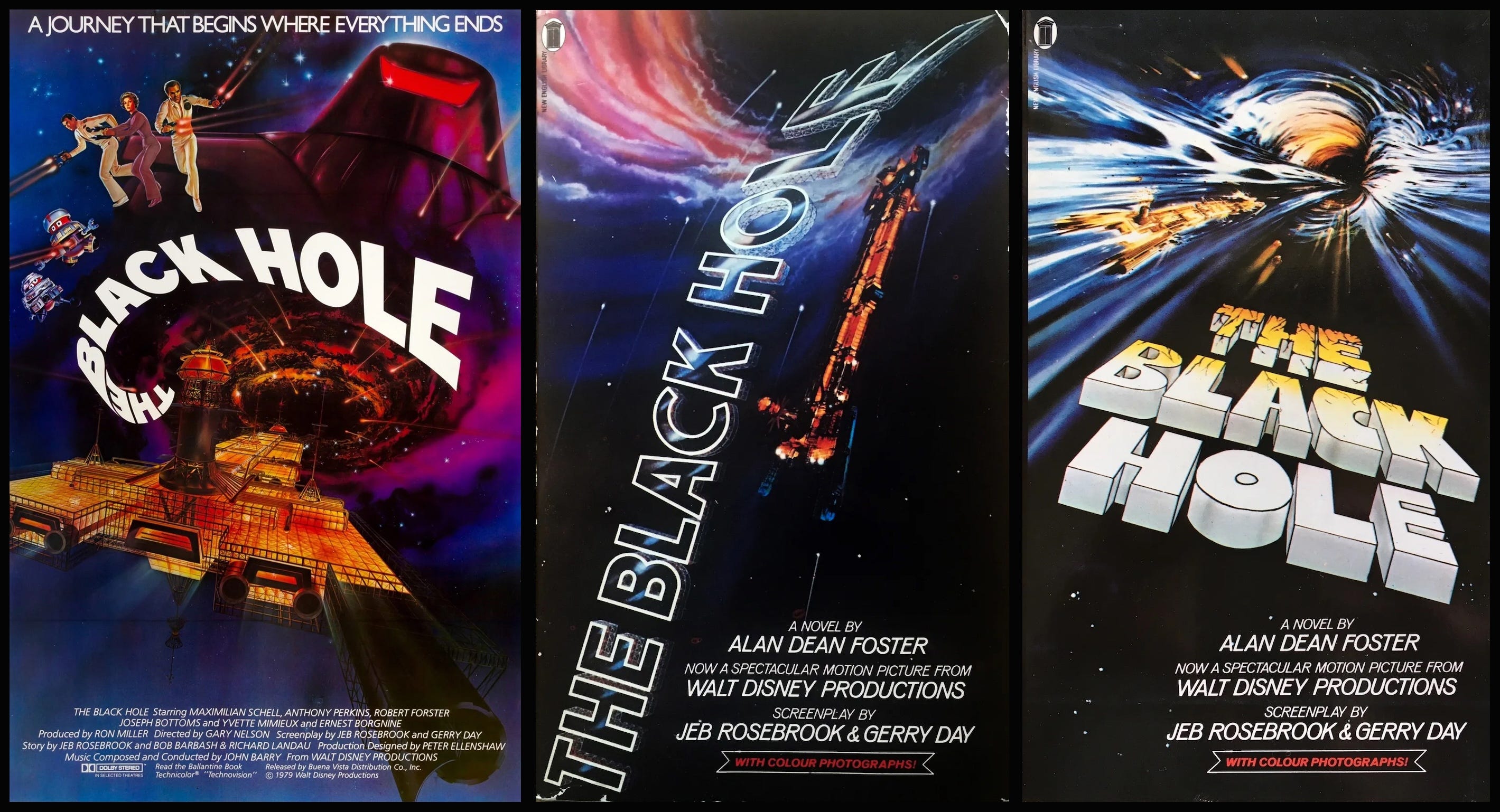 Foster does, however, run with Kate’s ESP as a way to climax the novel, which he does completely differently to the events as depicted in the film. A contemporary interview with Nelson reveals why this is: during production, The Black Hole’s conclusion was so top secret that it didn’t even exist. “There is not, and never was, a definitive ending written,” Nelson told Mediascene’s Jim Steranko in 1979. “Even the credited screenwriters did not write the actual ending we have on the film. They took the story up to the last seven minutes and stopped.” So, far from changing the ending according to his own whim, Foster was working from an incomplete screenplay that he was forced to conclude on his own, not knowing what the production would eventually opt for.